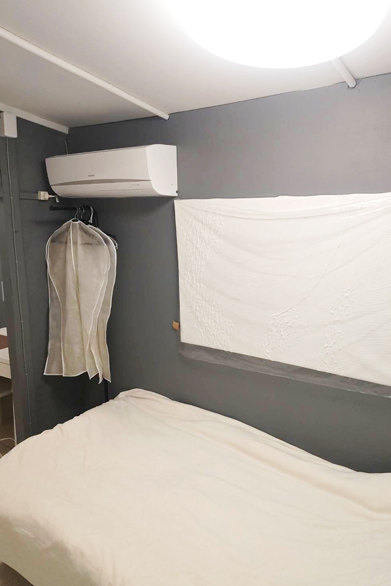 お部屋は、落ち着いたグレー×ホワイトの内装で、清潔感と心地よさを兼ね備えた空間。